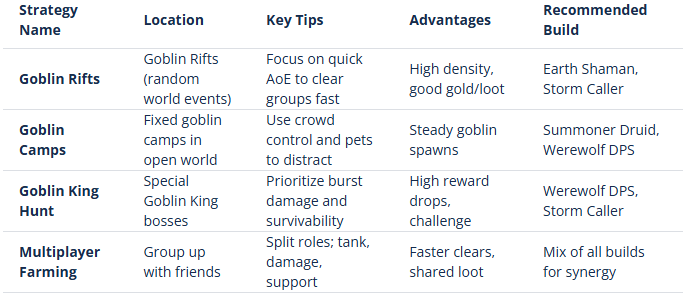 Go for AoE Skills – Abilities like the Earth Shaman’s Boulder or Storm Caller’s Tornado are great for wiping out goblin packs fast.
